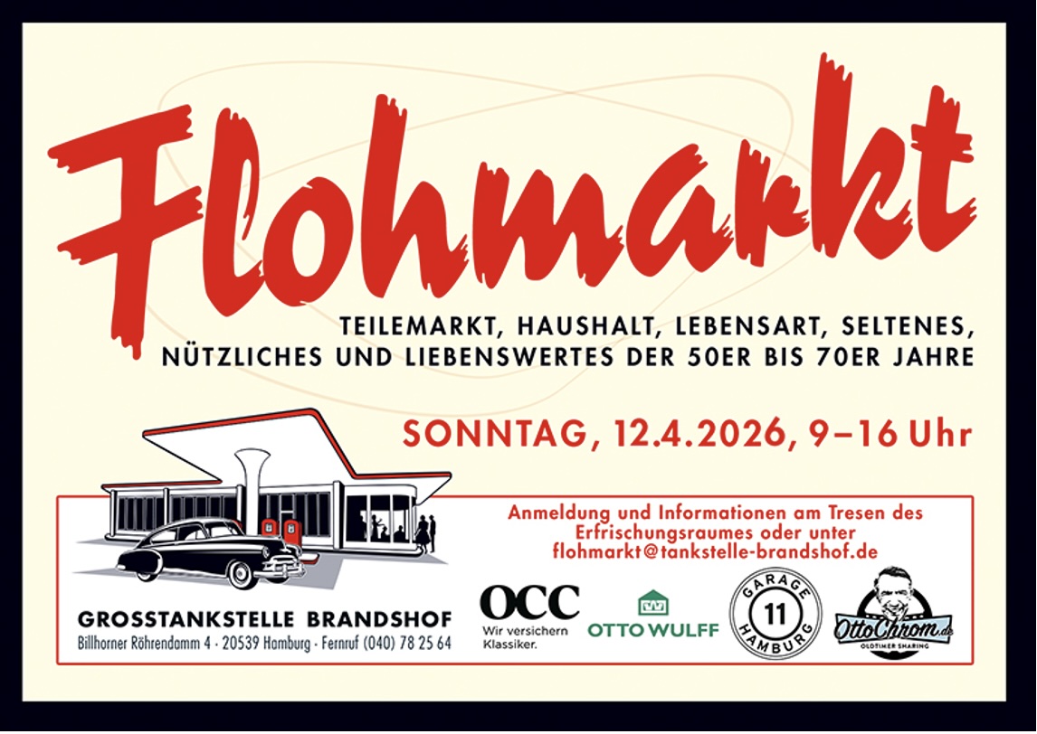 Am Sonntag den 12.04.2026 ist es "endlich" wieder soweit, unser Frühjahrs-Flohmarkt für Autoteile, Haushalt und Lebensart der 50er bis 70er Jahre steht wieder an.