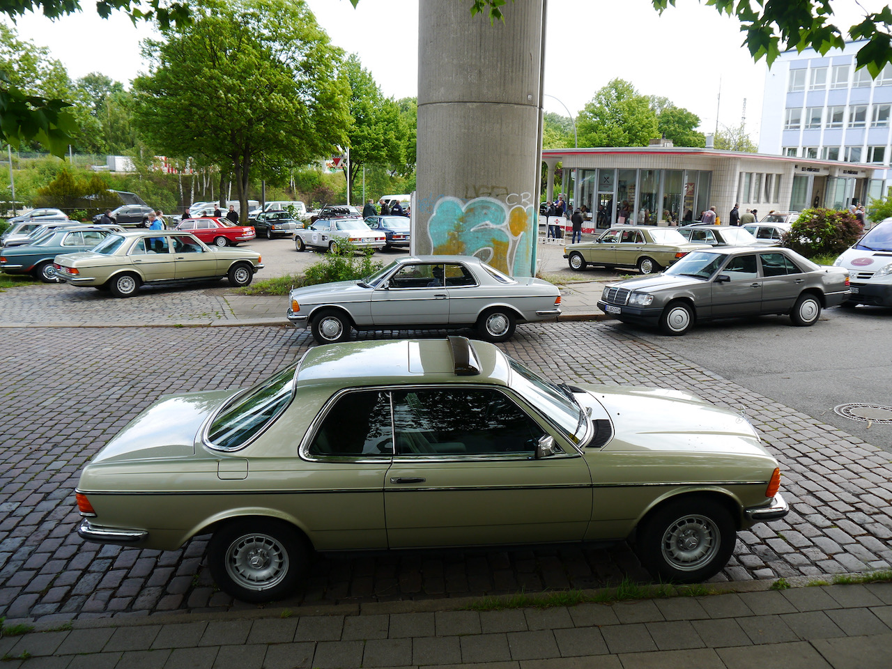 Es laden ein der W123-Club-Stammtisch-Hamburg. An diesem Tag stehen auf dem Hof der Oldtimer Tankstelle nur die Sindelfinger unter sich.