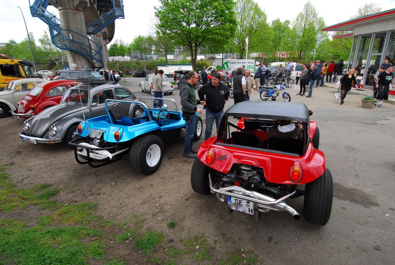 Wie jedes Jahr vor dem traditionellen Maikäfertreffen finden sich Fahrer und Interessierte luftgekühlter Volkswagen bei uns ein. An diesem Tag stehen auf dem Hof der Oldtimer Tankstelle nur die VW unter sich.